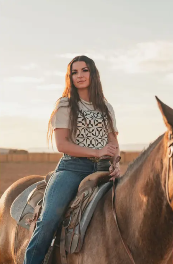 COWBOY HATS is printed on a Bella + Canvas 3001 unisex cream color tee with black letter design.